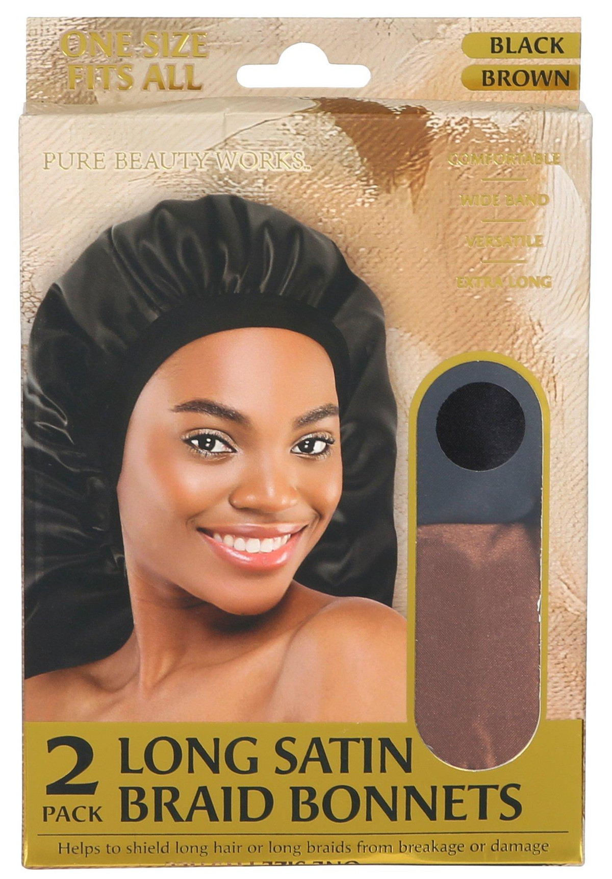 2 Pk Long Satin Braid Bonnet