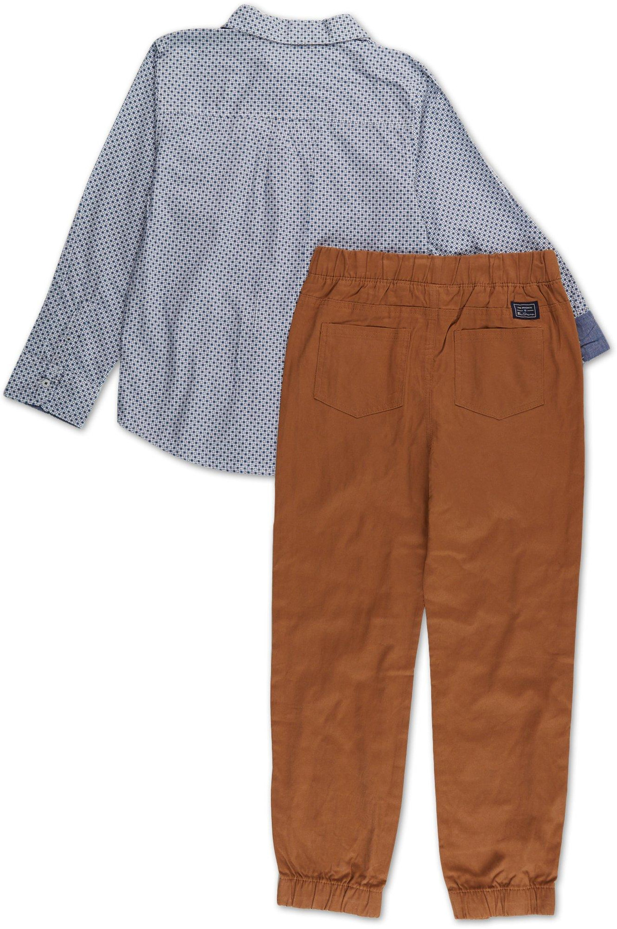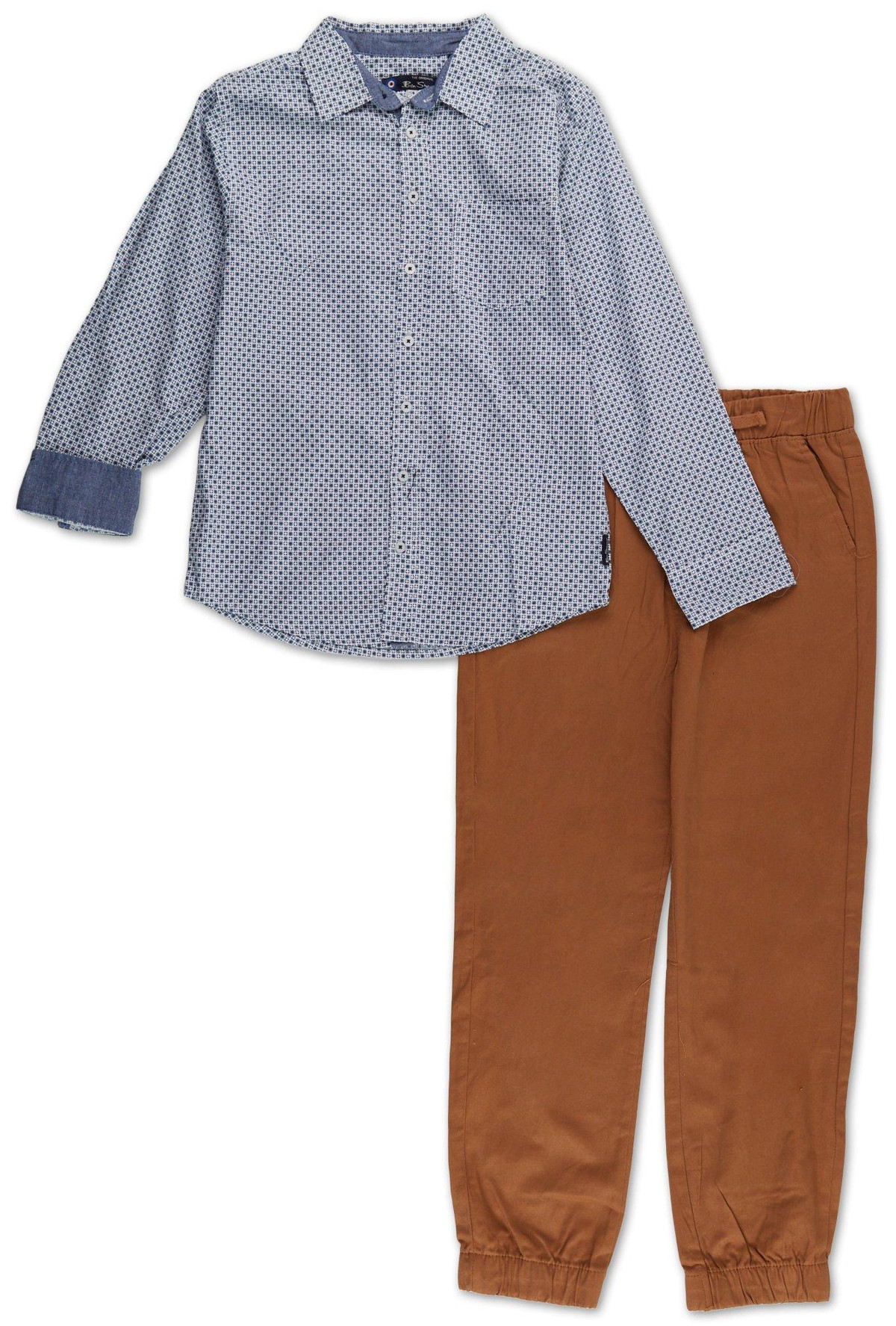 Boys 2 Pc Blue Collared Shirt and Jogger Pants Set