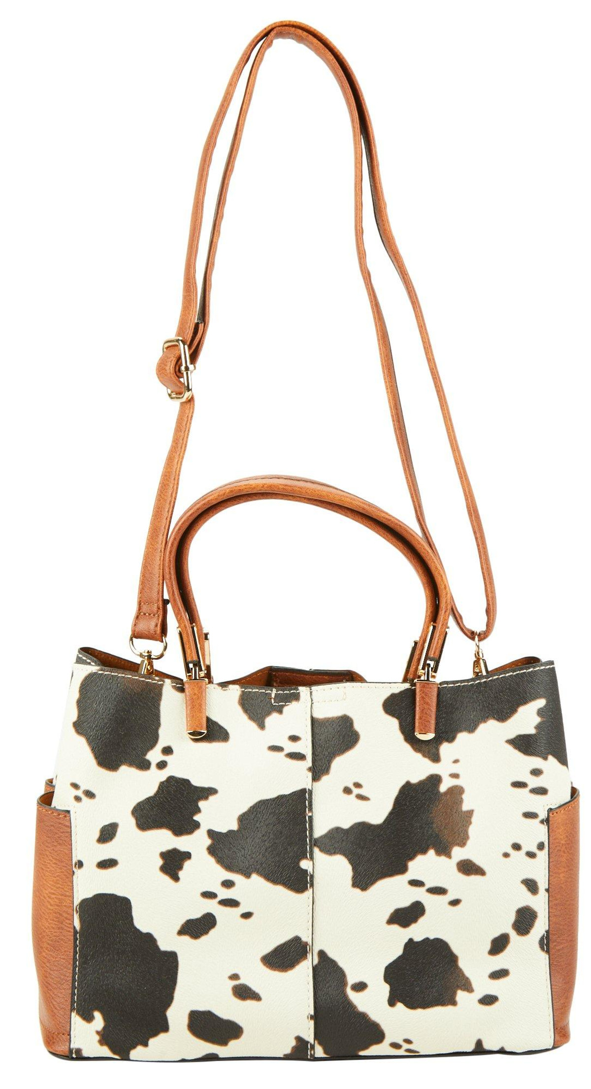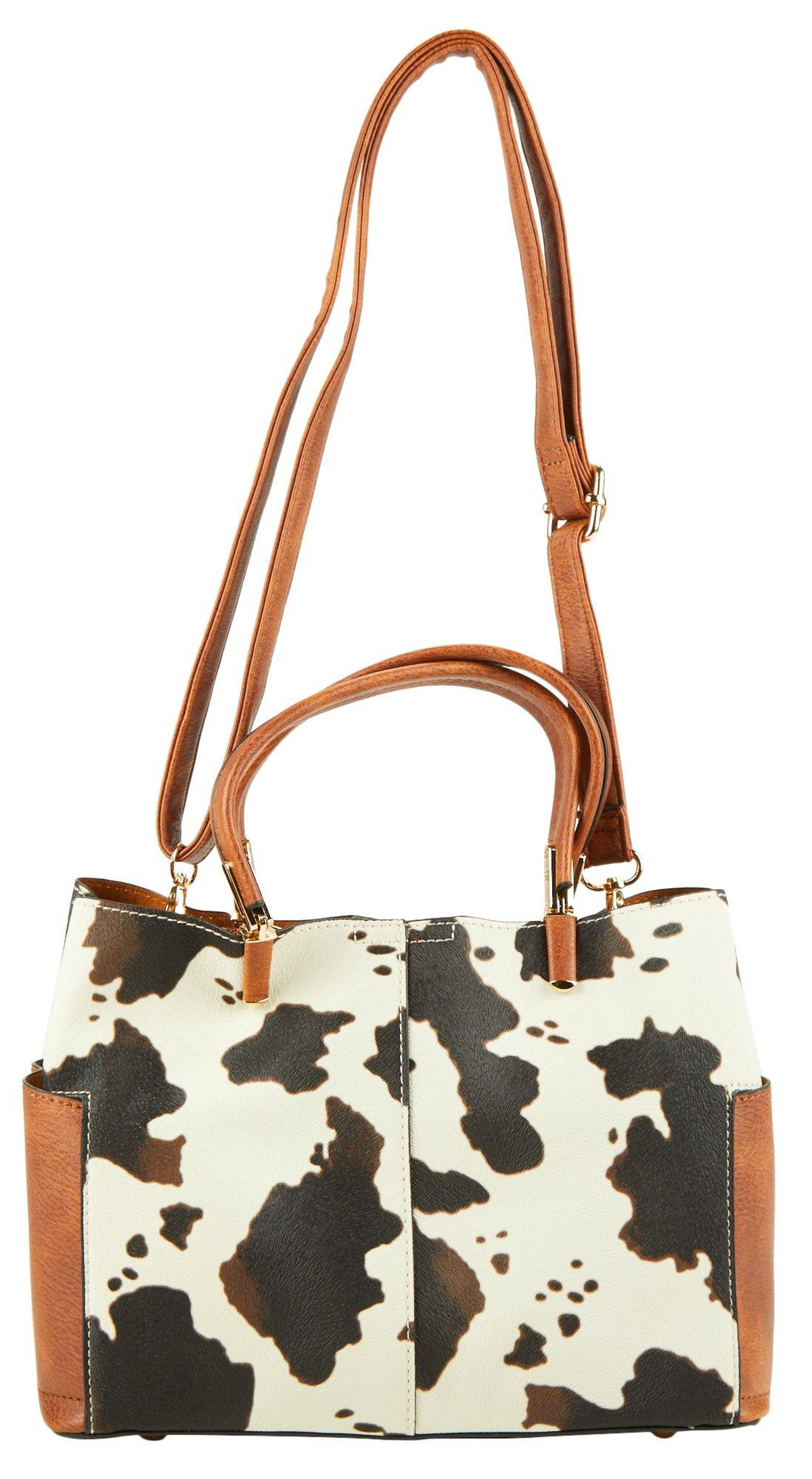 Faux Leather Cow Print Satchel
