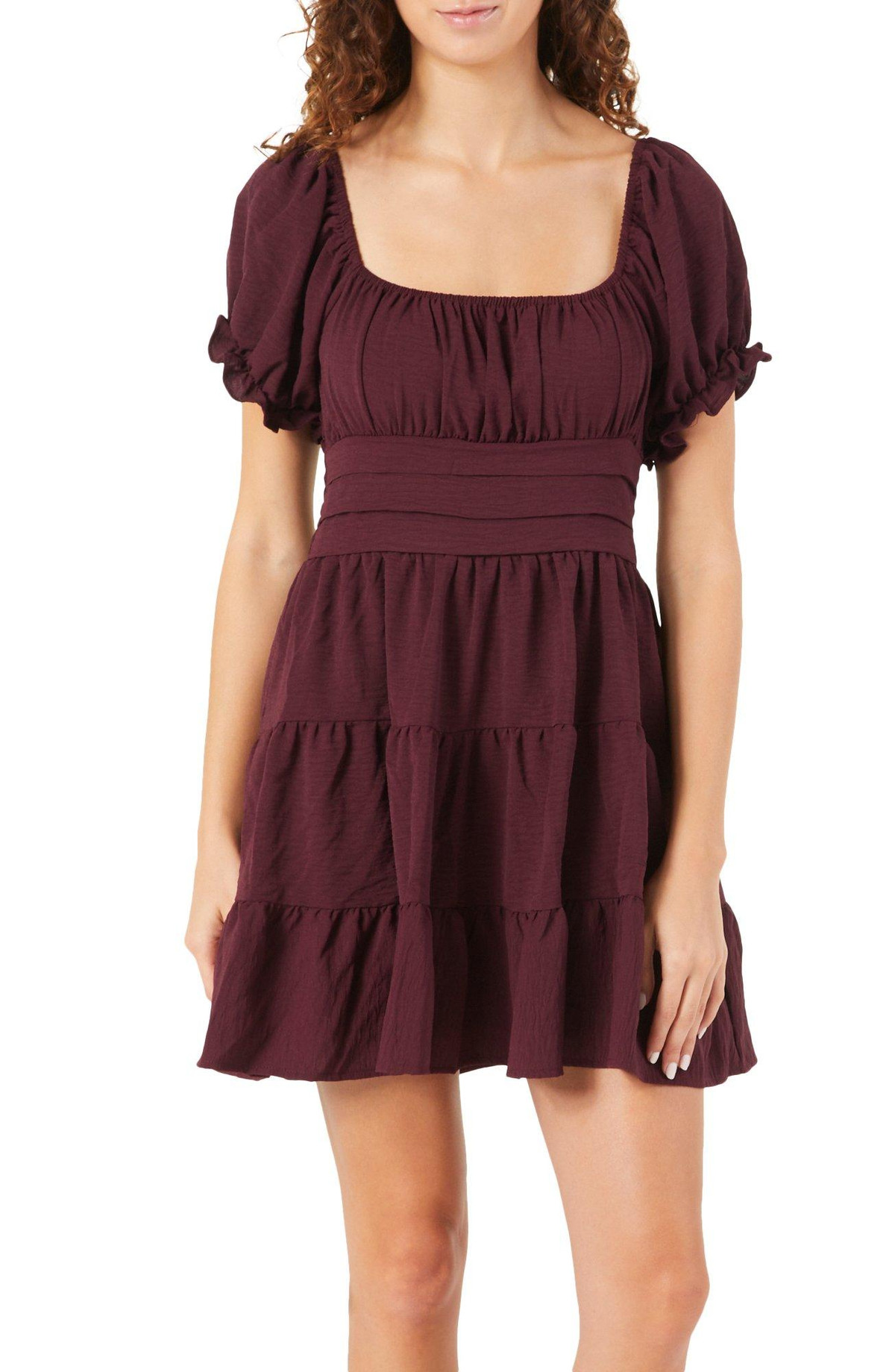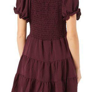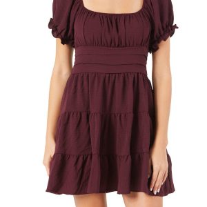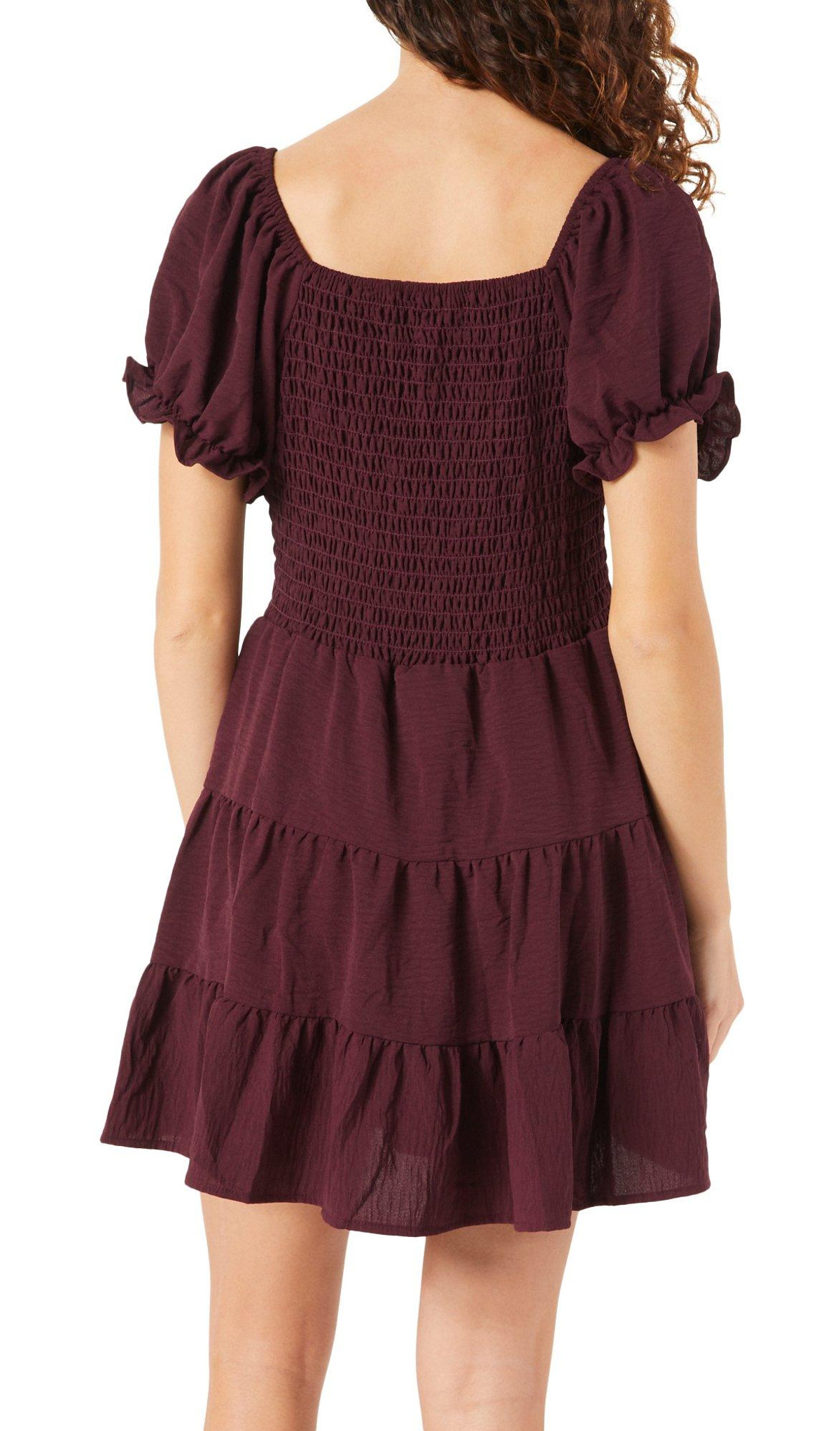 Juniors Solid Puff Sleeve Dress
