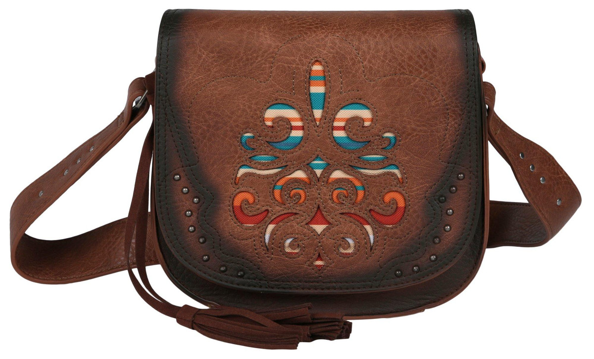 Laser Cut Studded Saddle Crossbody