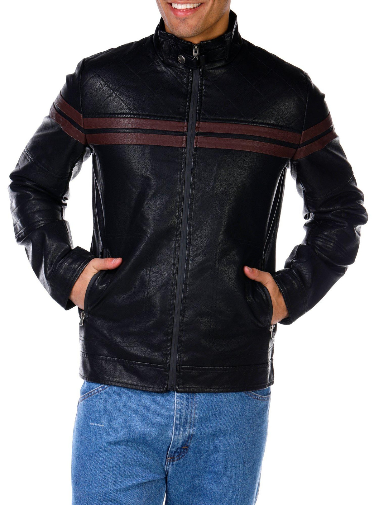Men's Faux Leather Double Stripe Moto Jacket