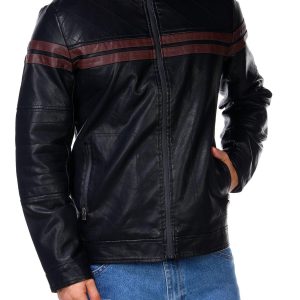 Men's Faux Leather Double Stripe Moto Jacket