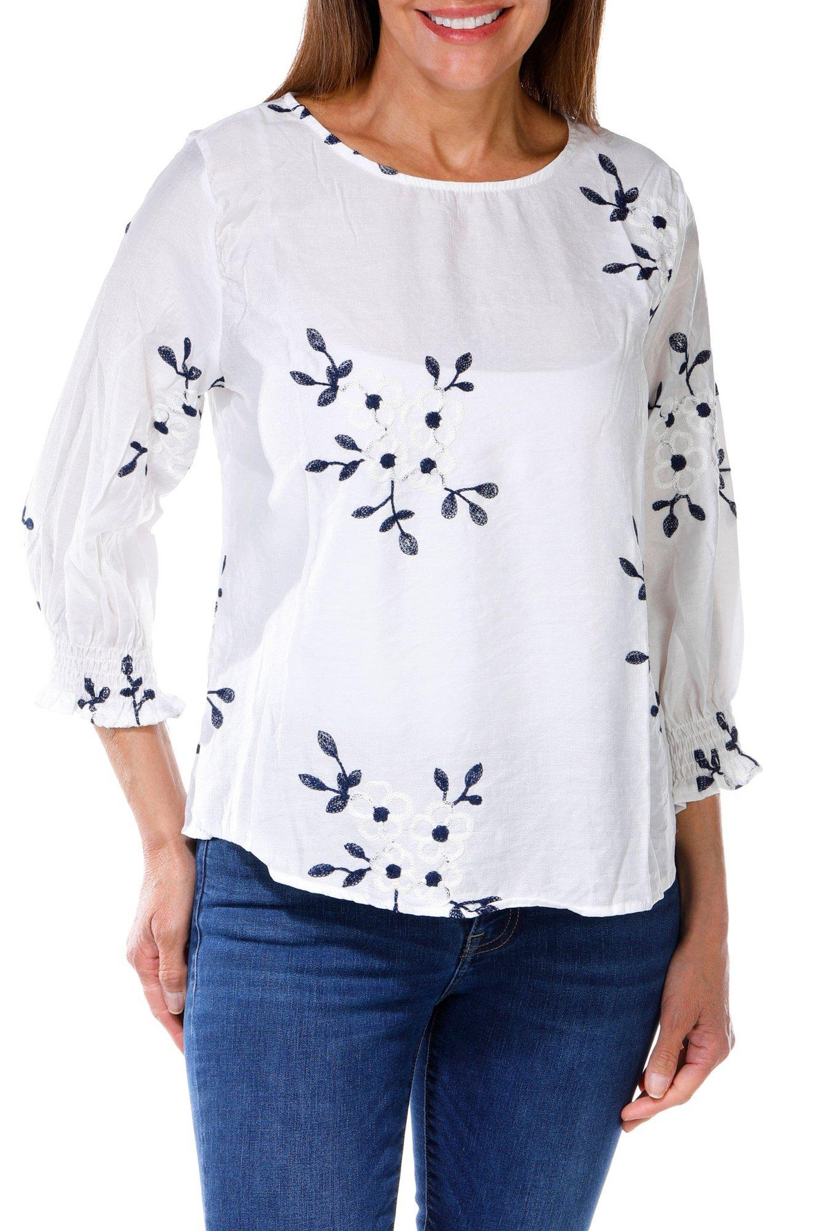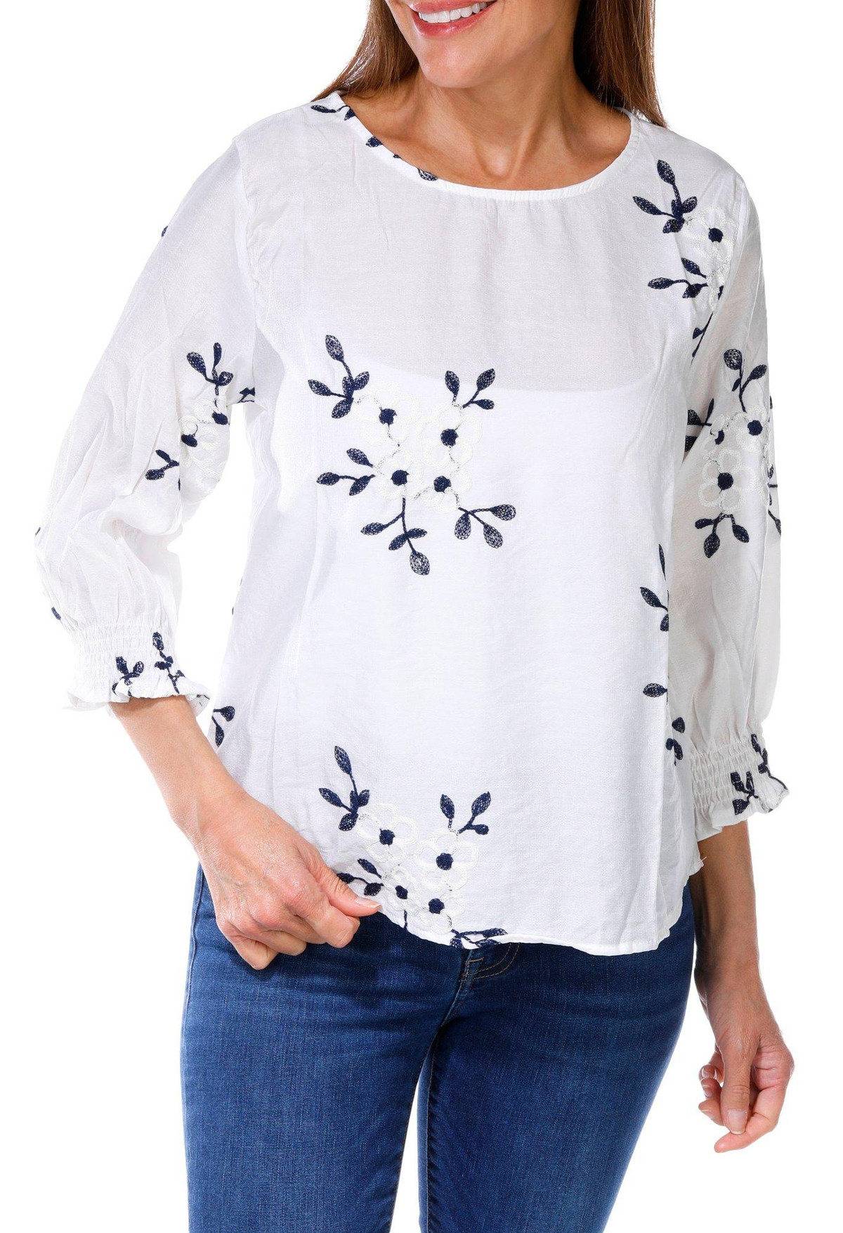 Women's 3/4 Sleeve Embroidered Top