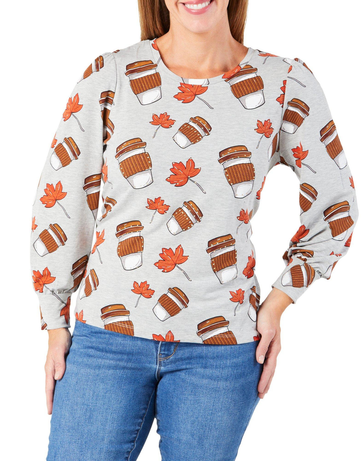 Women's Coffee Cup & Fall Leaves Top