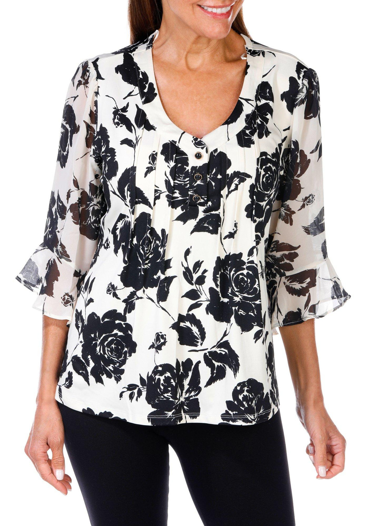 Women's Floral Print Bell Sleeve Top