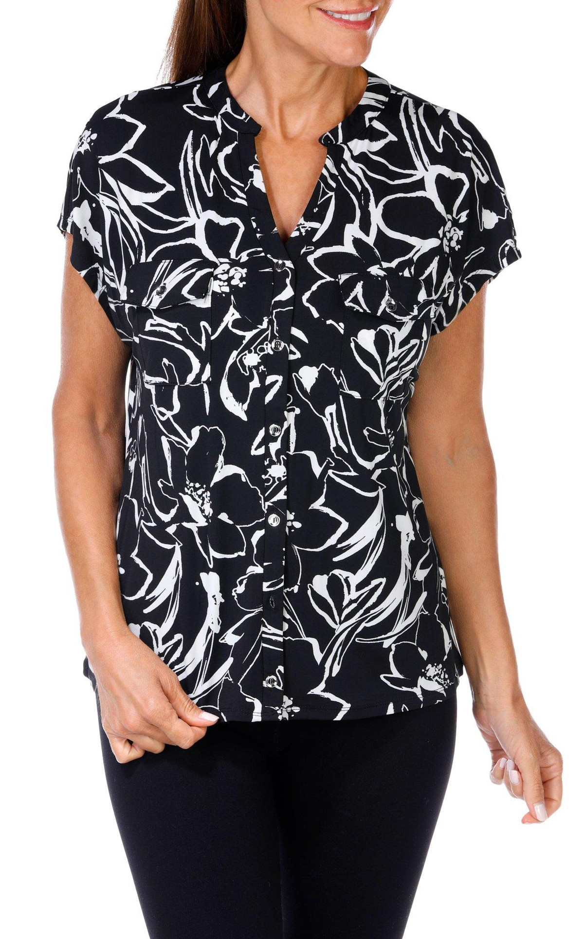 Women's Floral Print Button Front Top