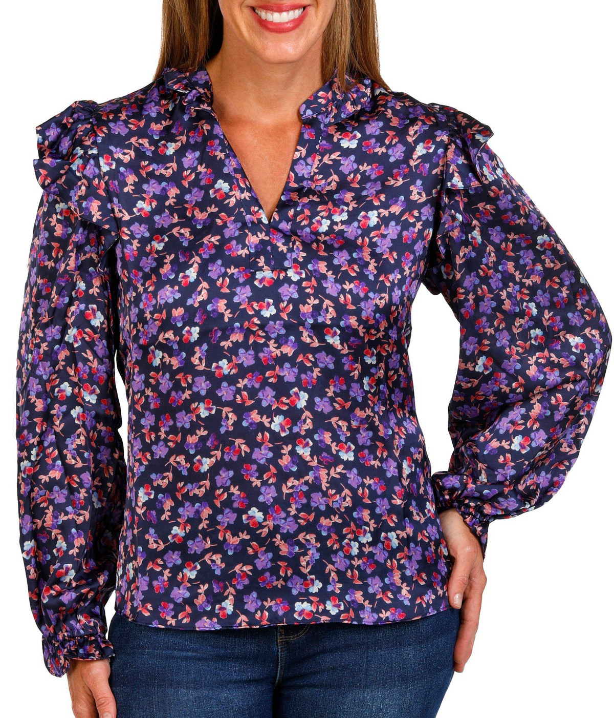 Women's Floral & Ruffle Top