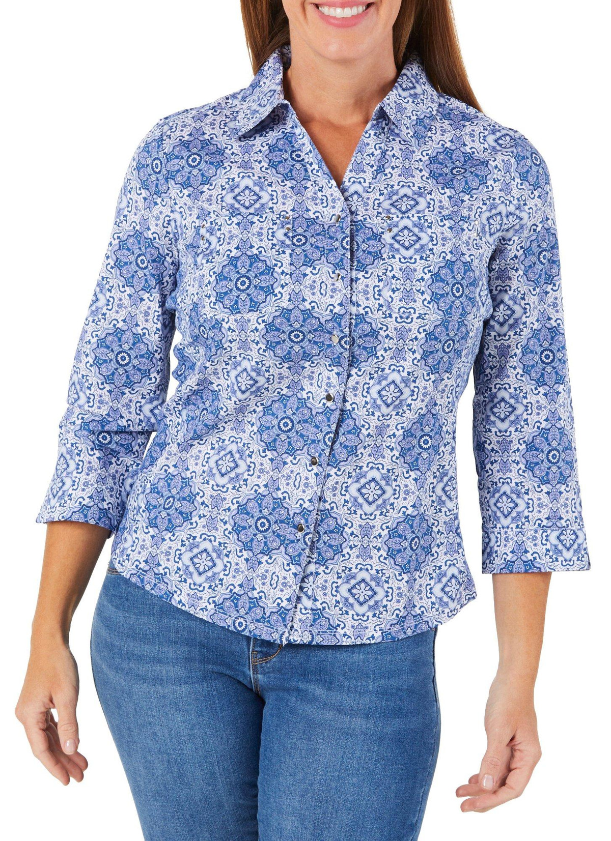 Women's Mandala Print Button Down Top