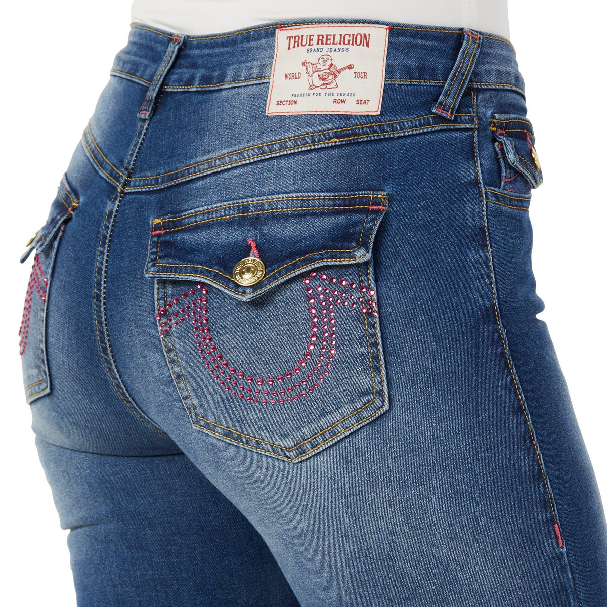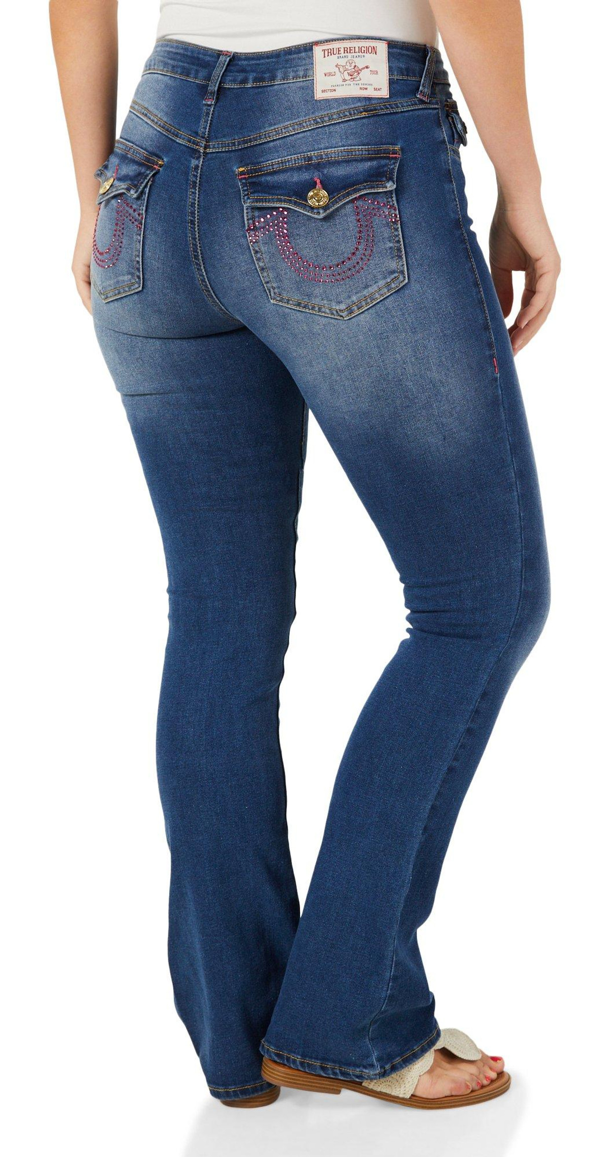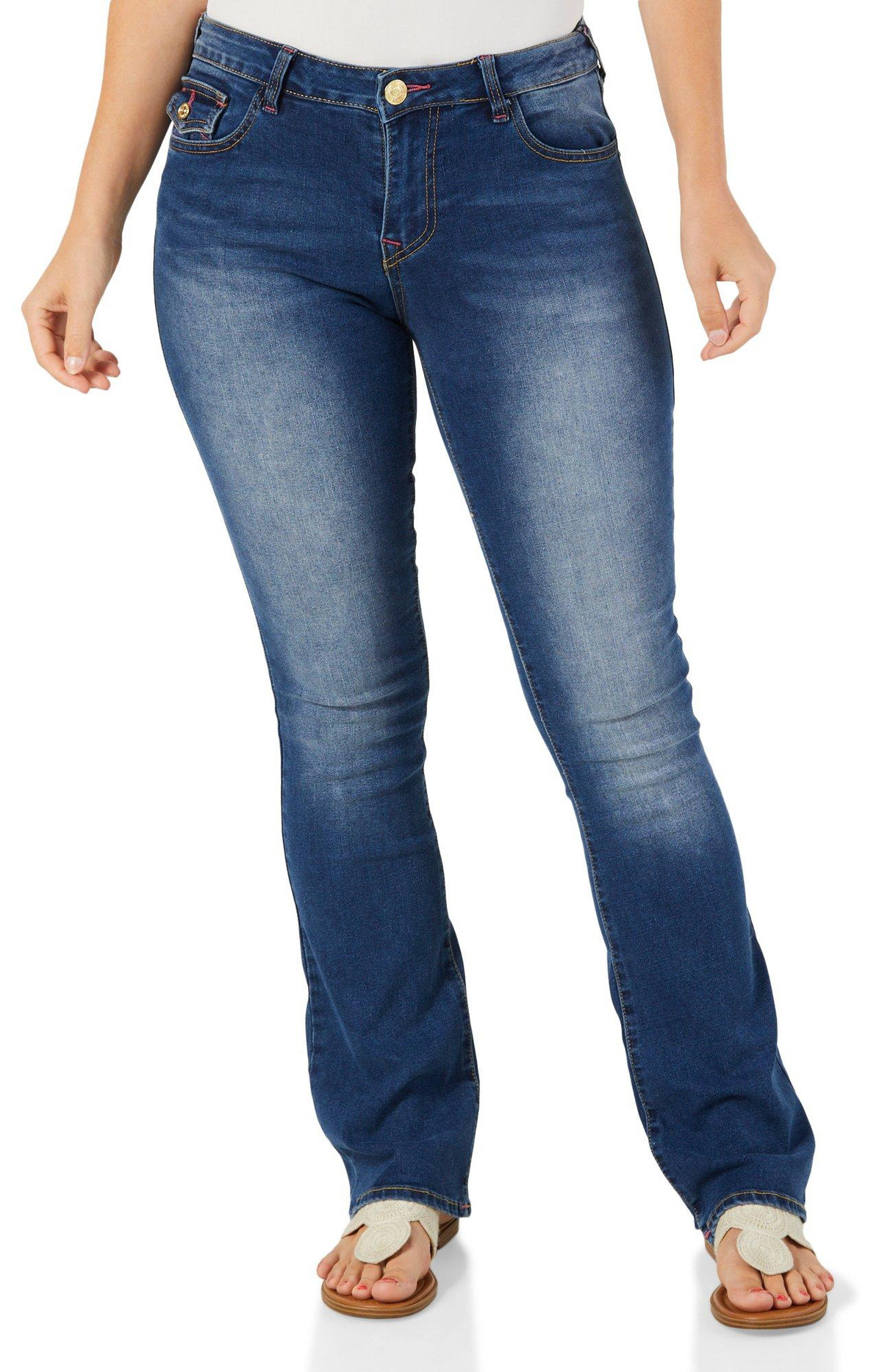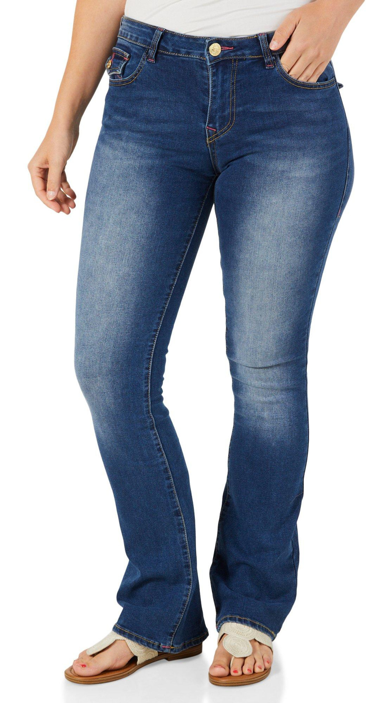 Women's Mid Rise Bling Pocket Boot Cut Jeans