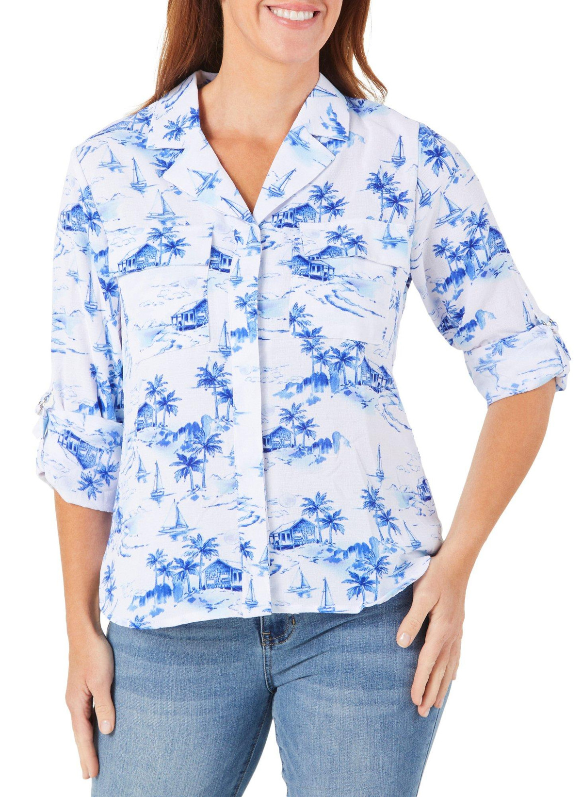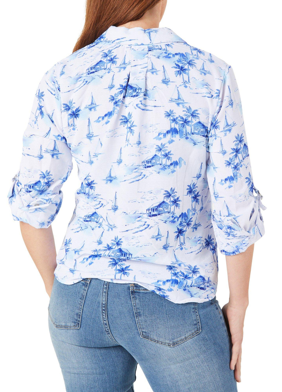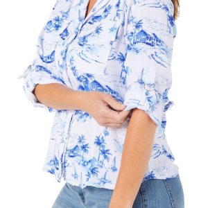 Women's Palm Tree Print Button Down Top