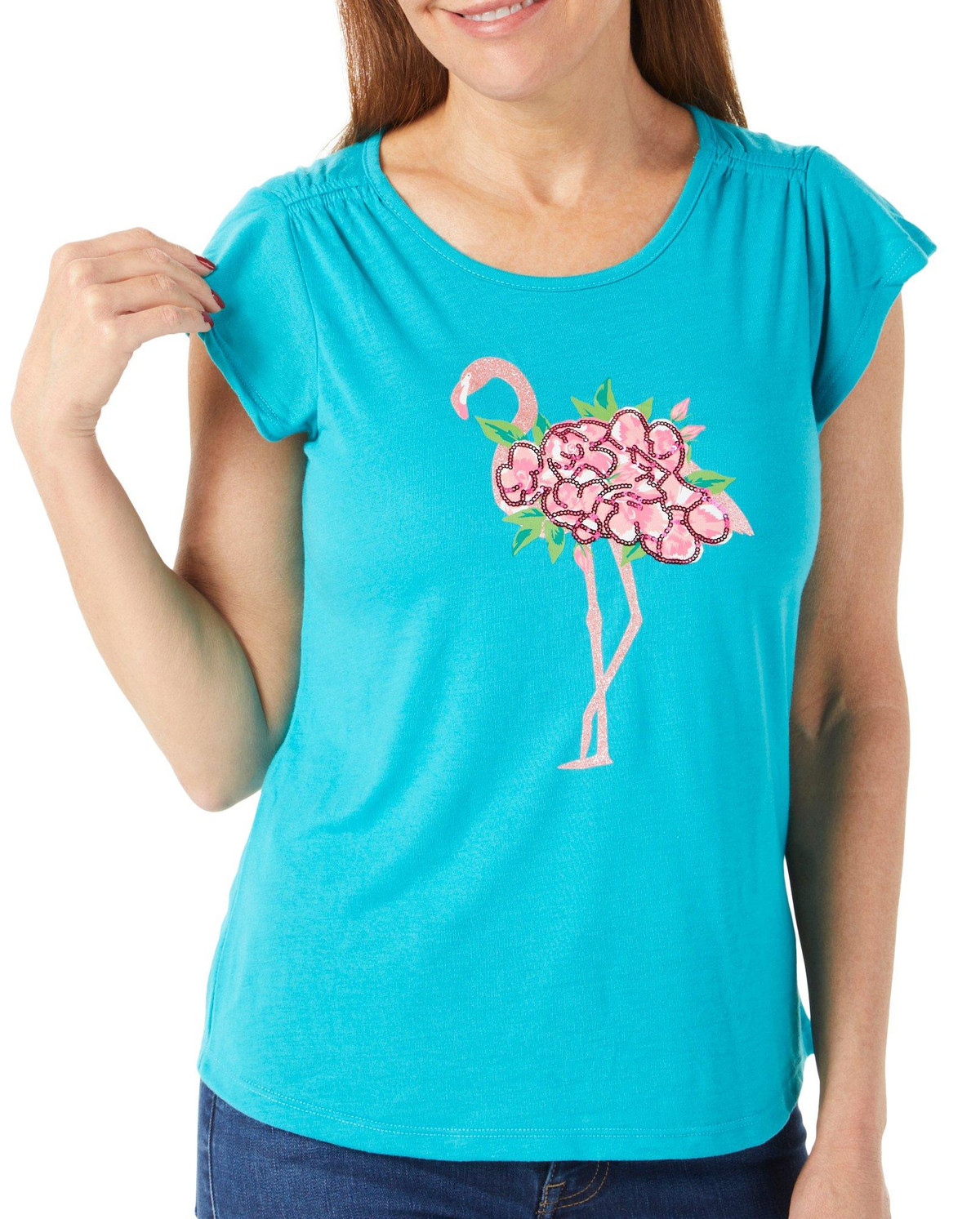 Women's Petite Flamingo Graphic Top