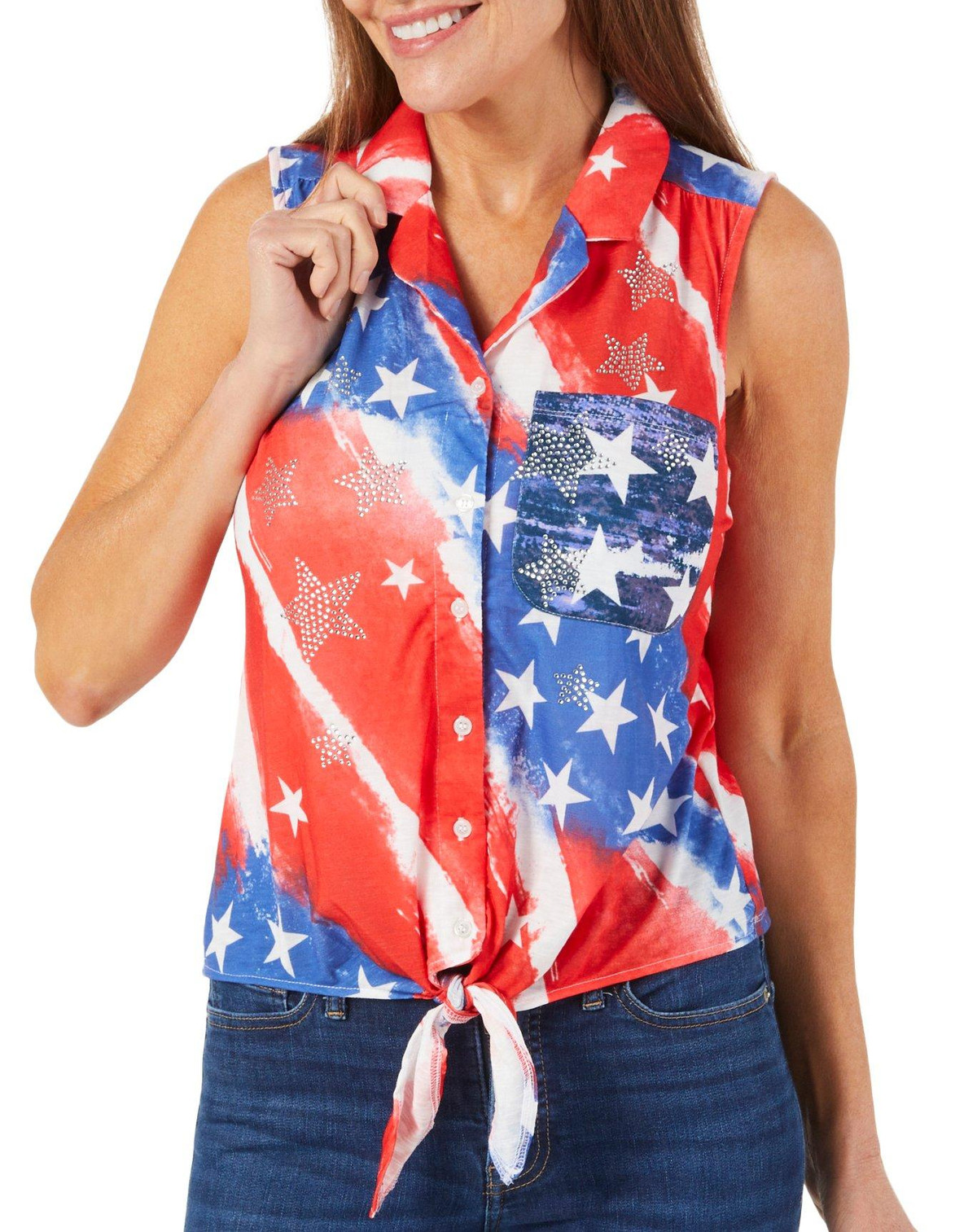 Women's Petite Sleeveless Americana Print Top