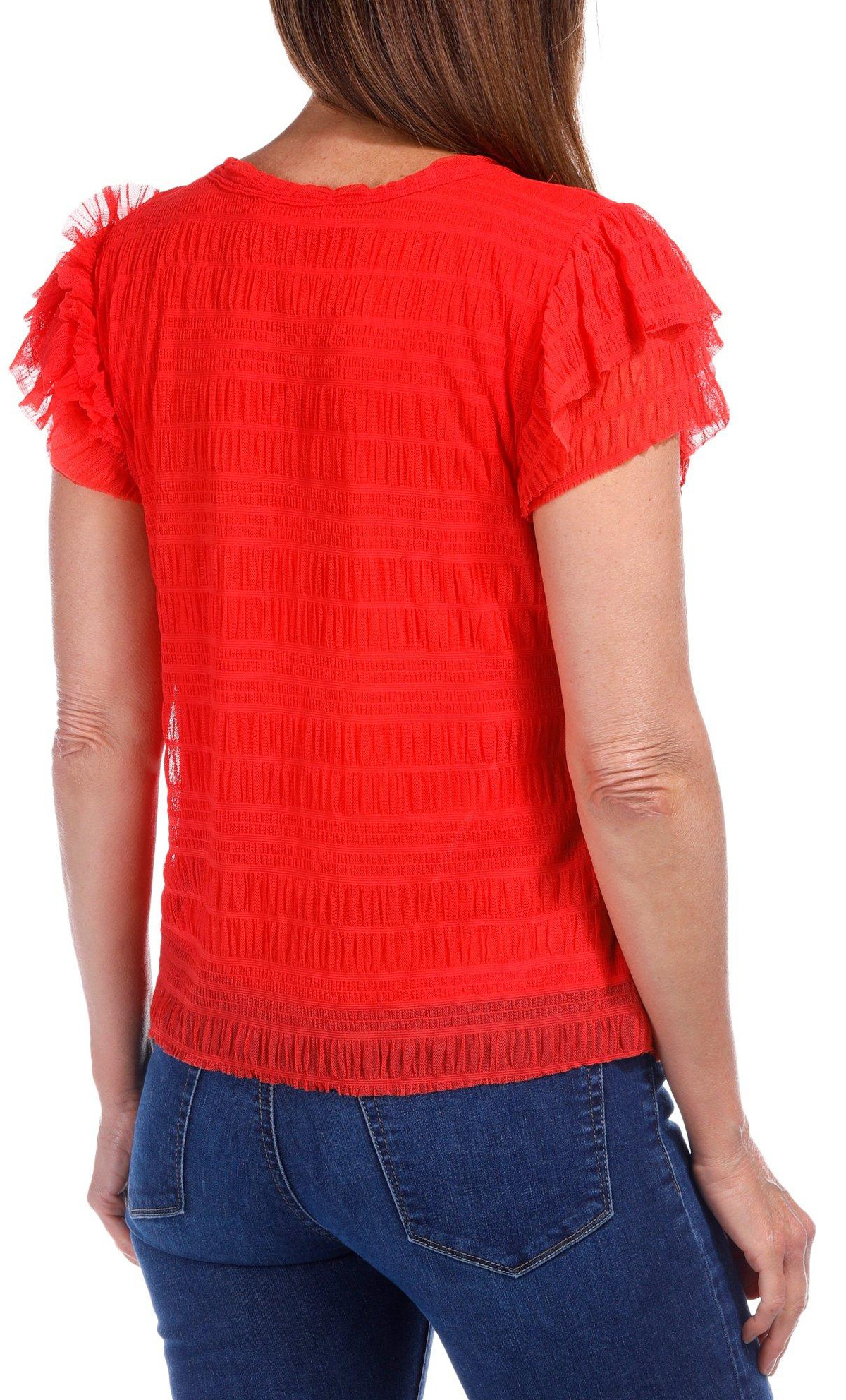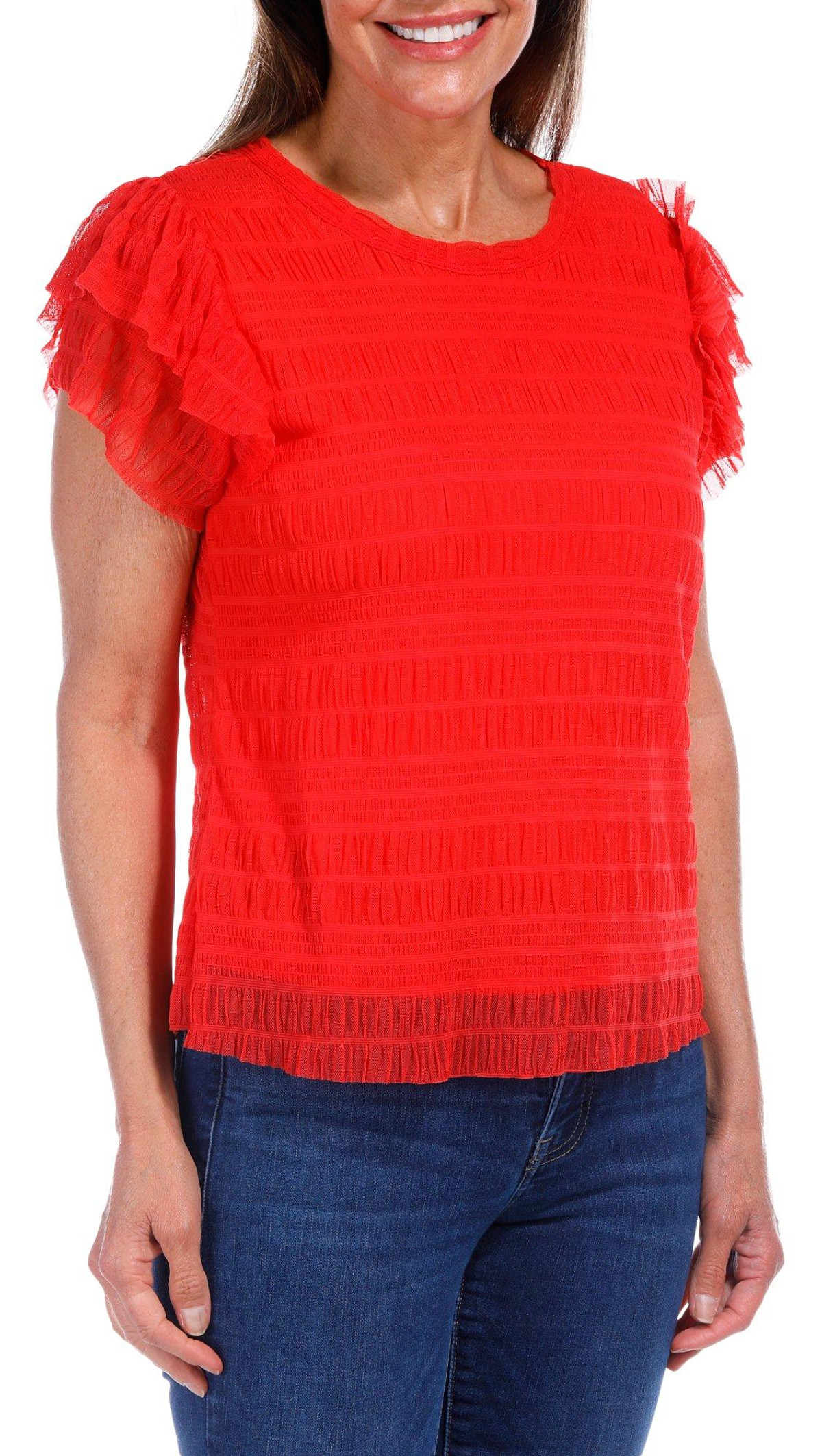 Women's Petite Solid Ruffle Top