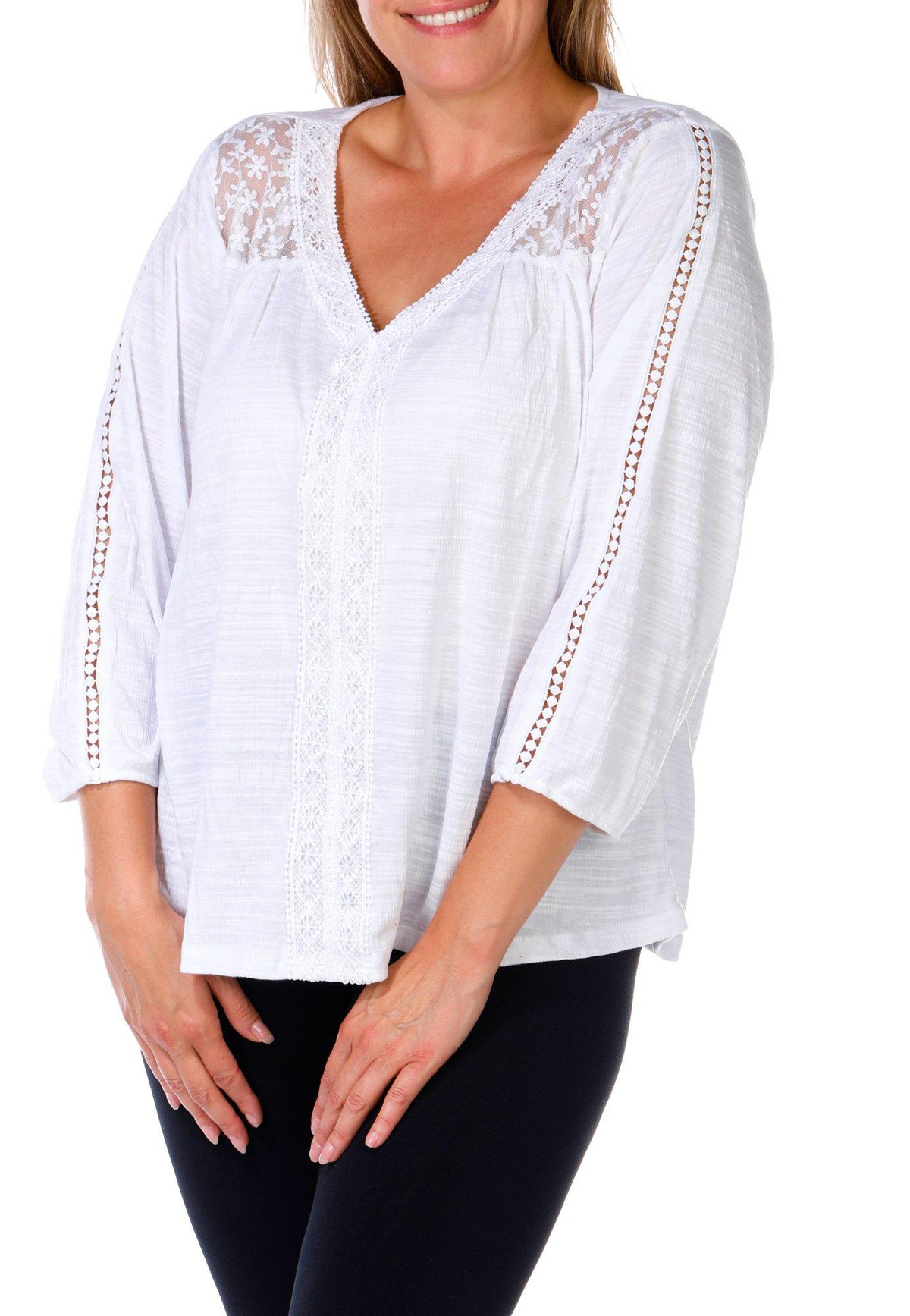 Women's Plus Crochet Trim Top