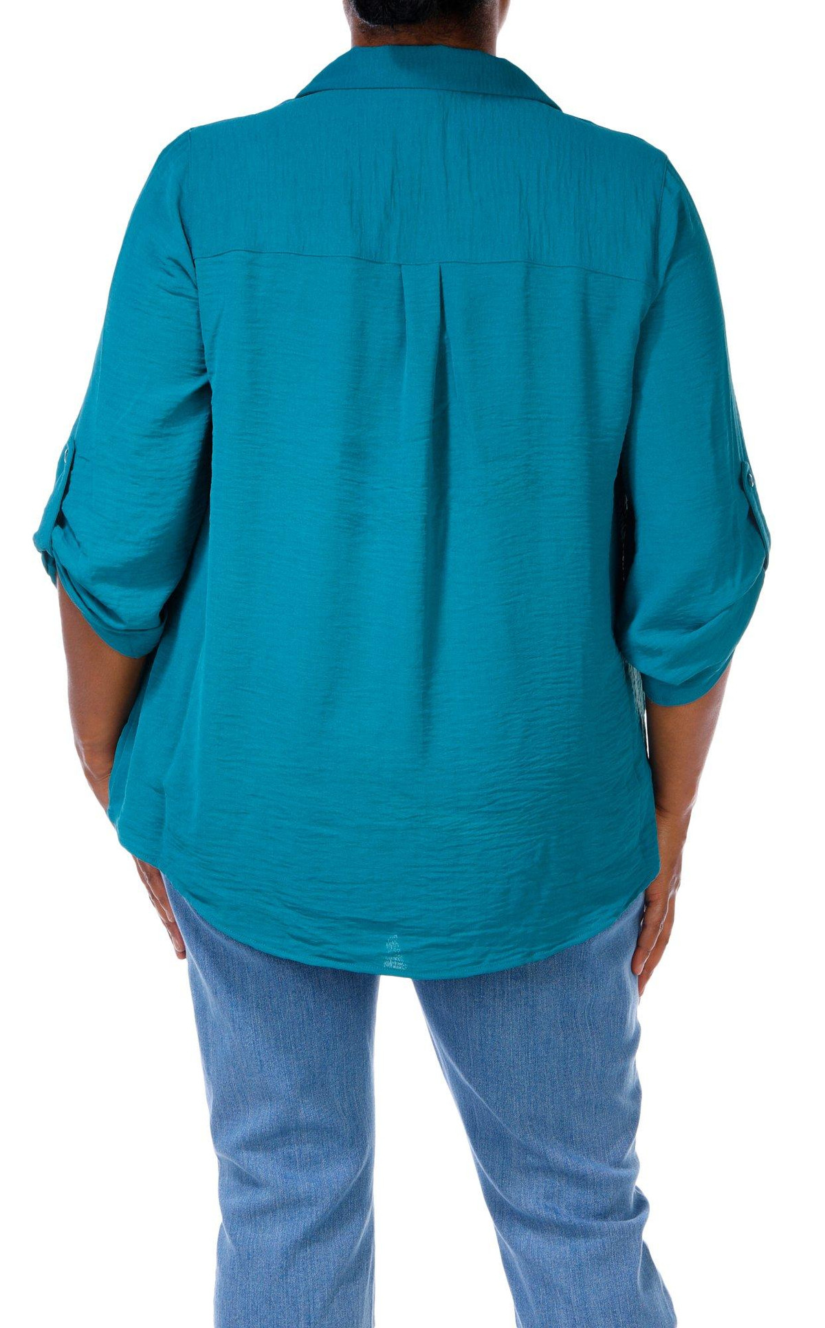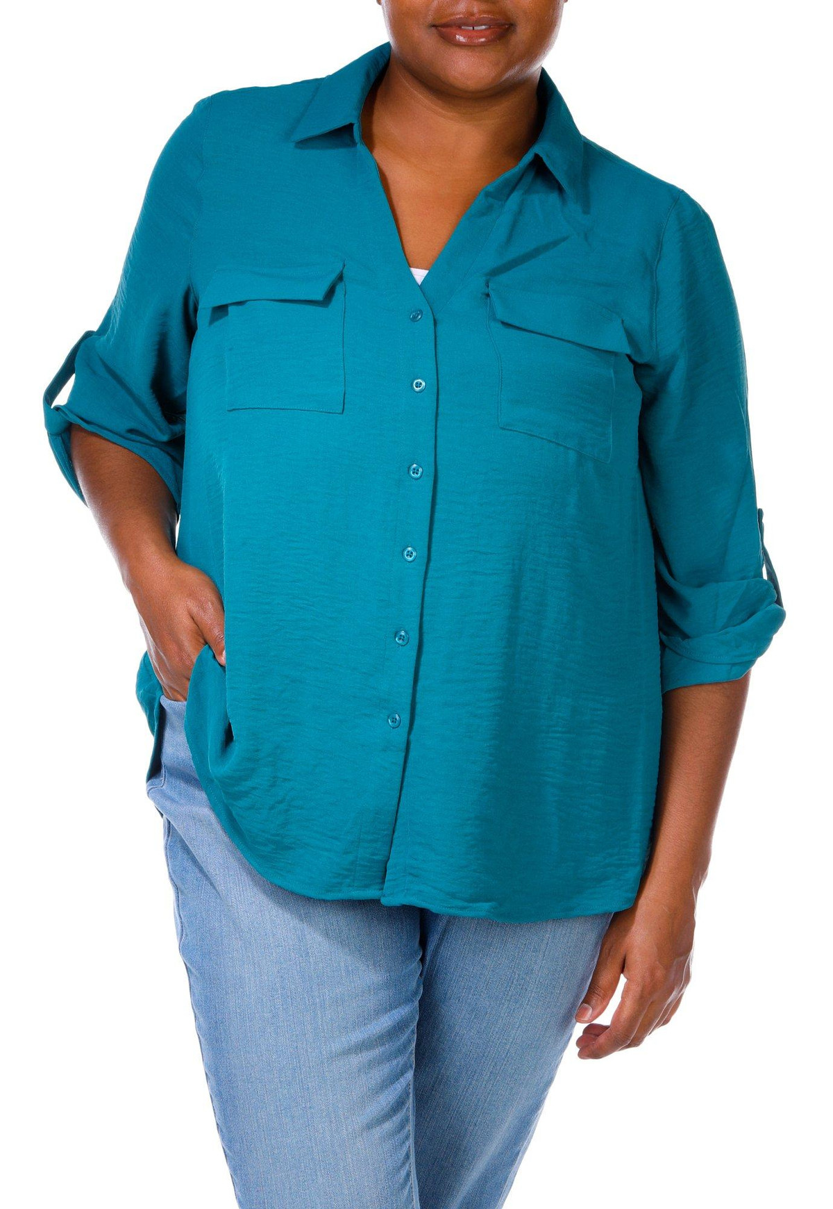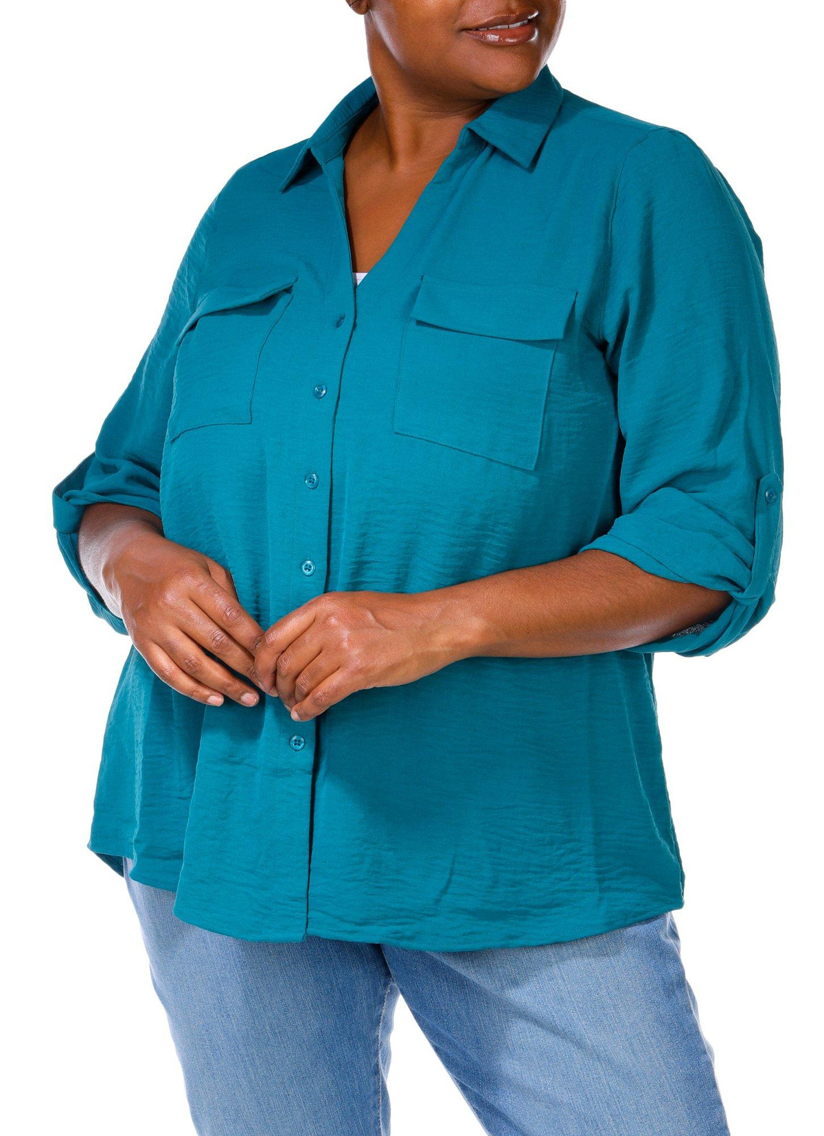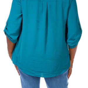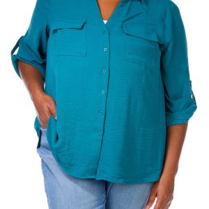 Women's Plus Solid Button Down Top