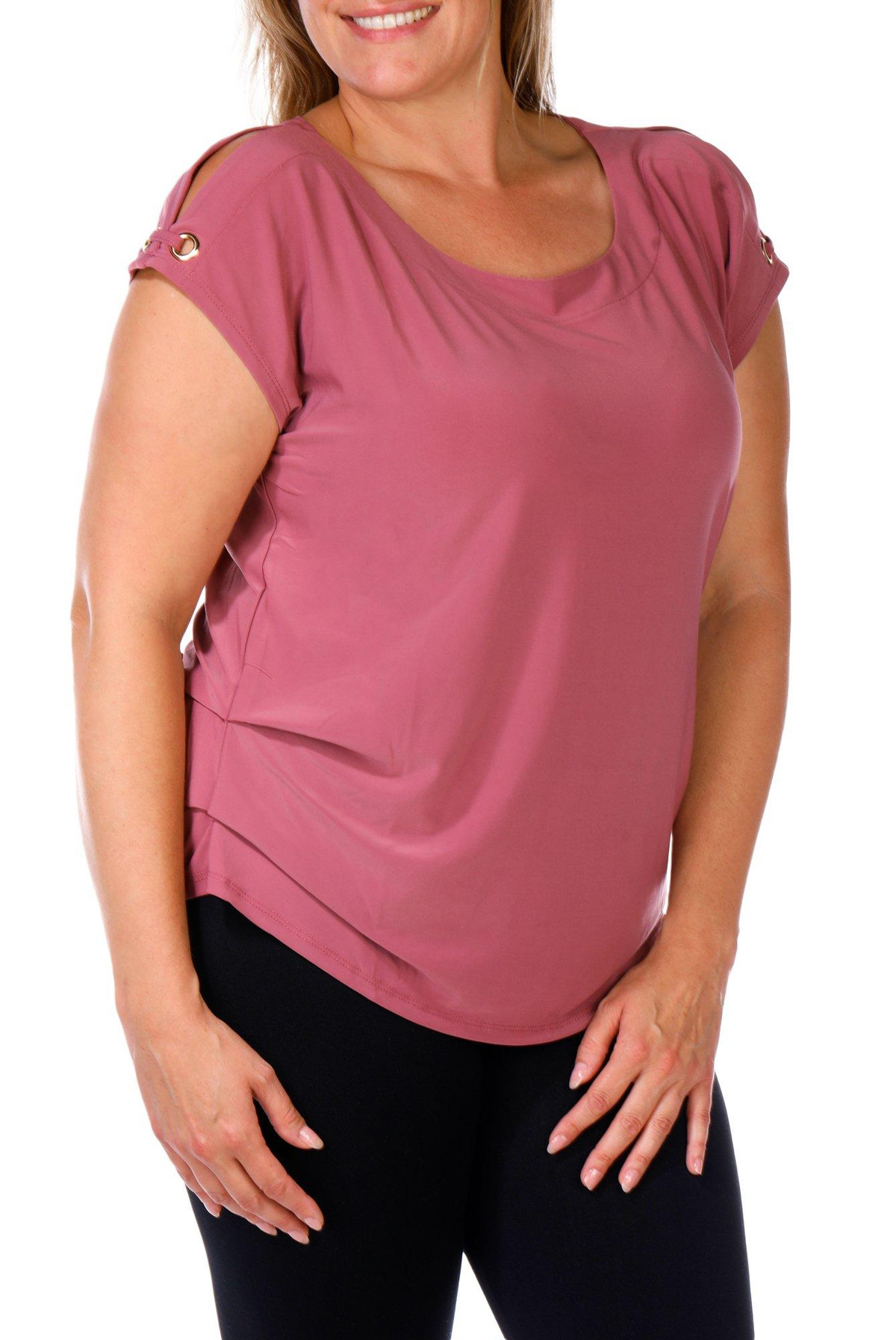 Women's Plus Solid Button Shoulder Top
