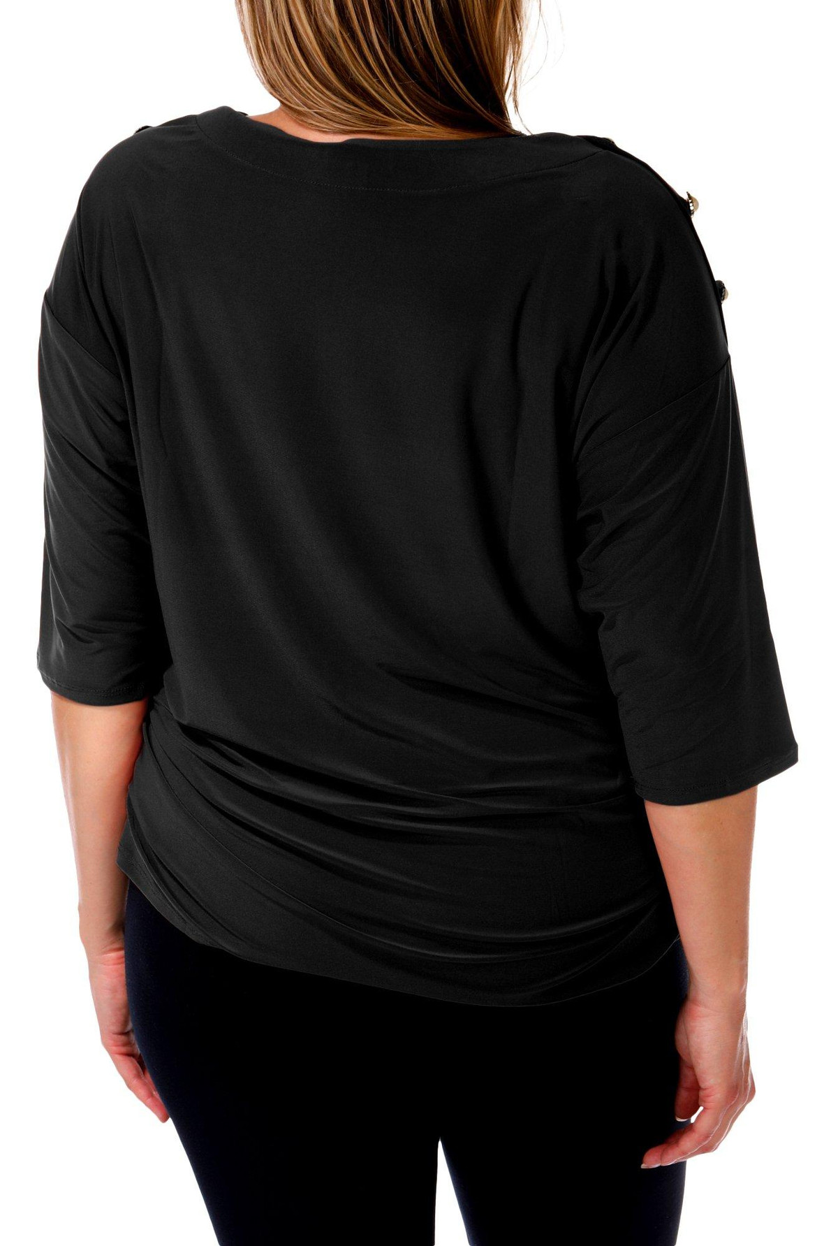 Women's Plus Solid Button Shoulder Top