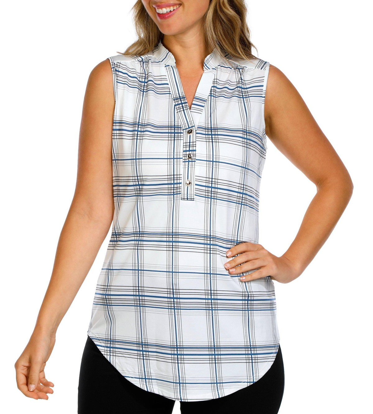 Women's Sleeveless Plaid Print Top