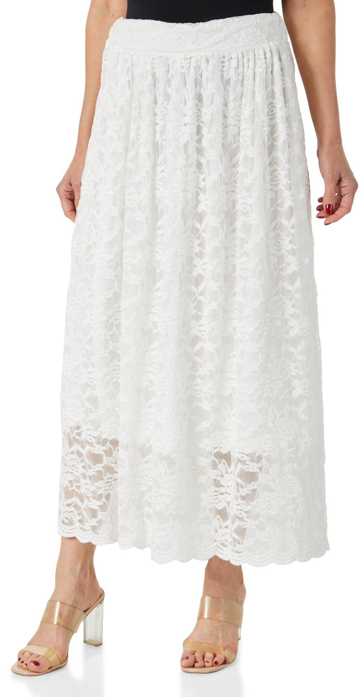 Women's Solid Lace Overlay Skirt