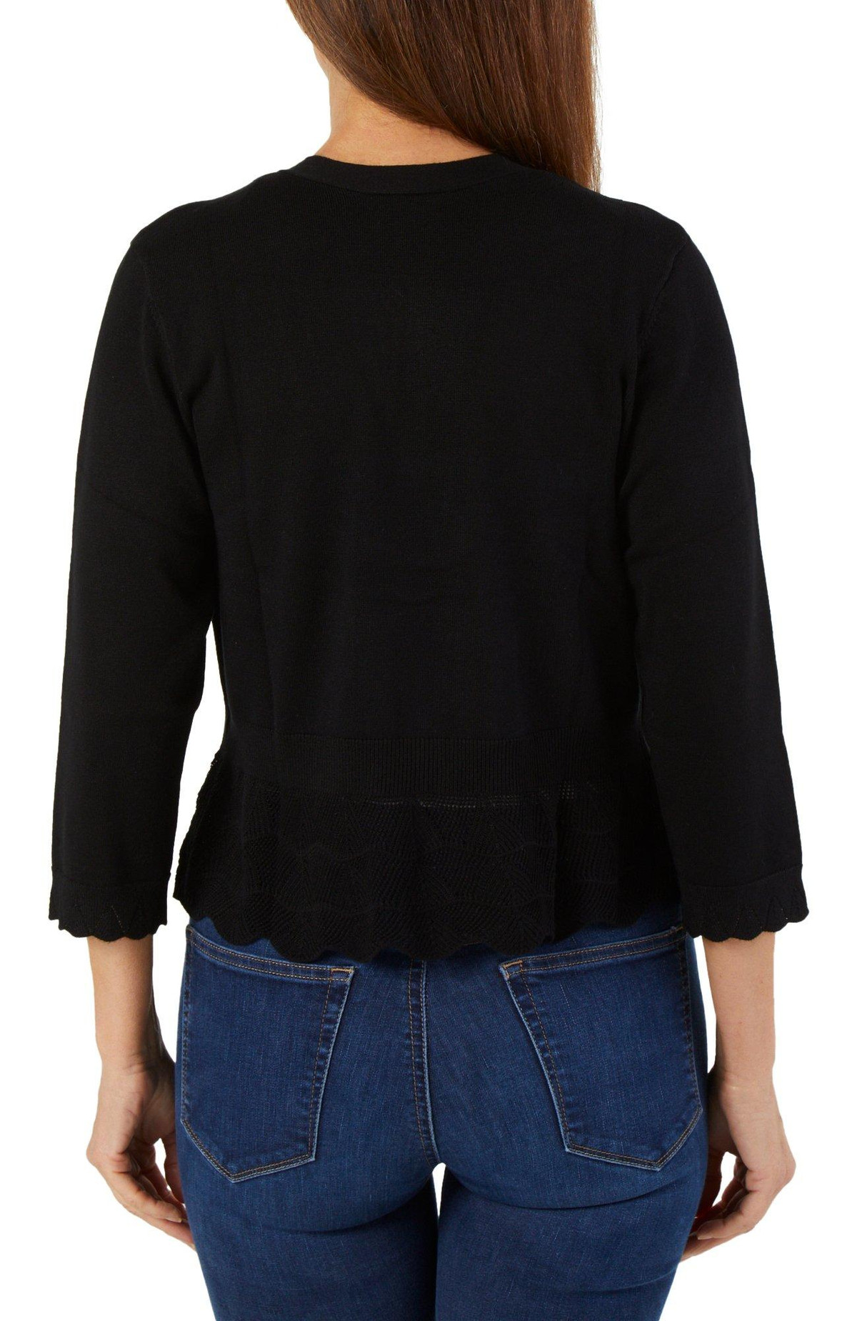 Women's Solid Perforated Open Front Cardigan