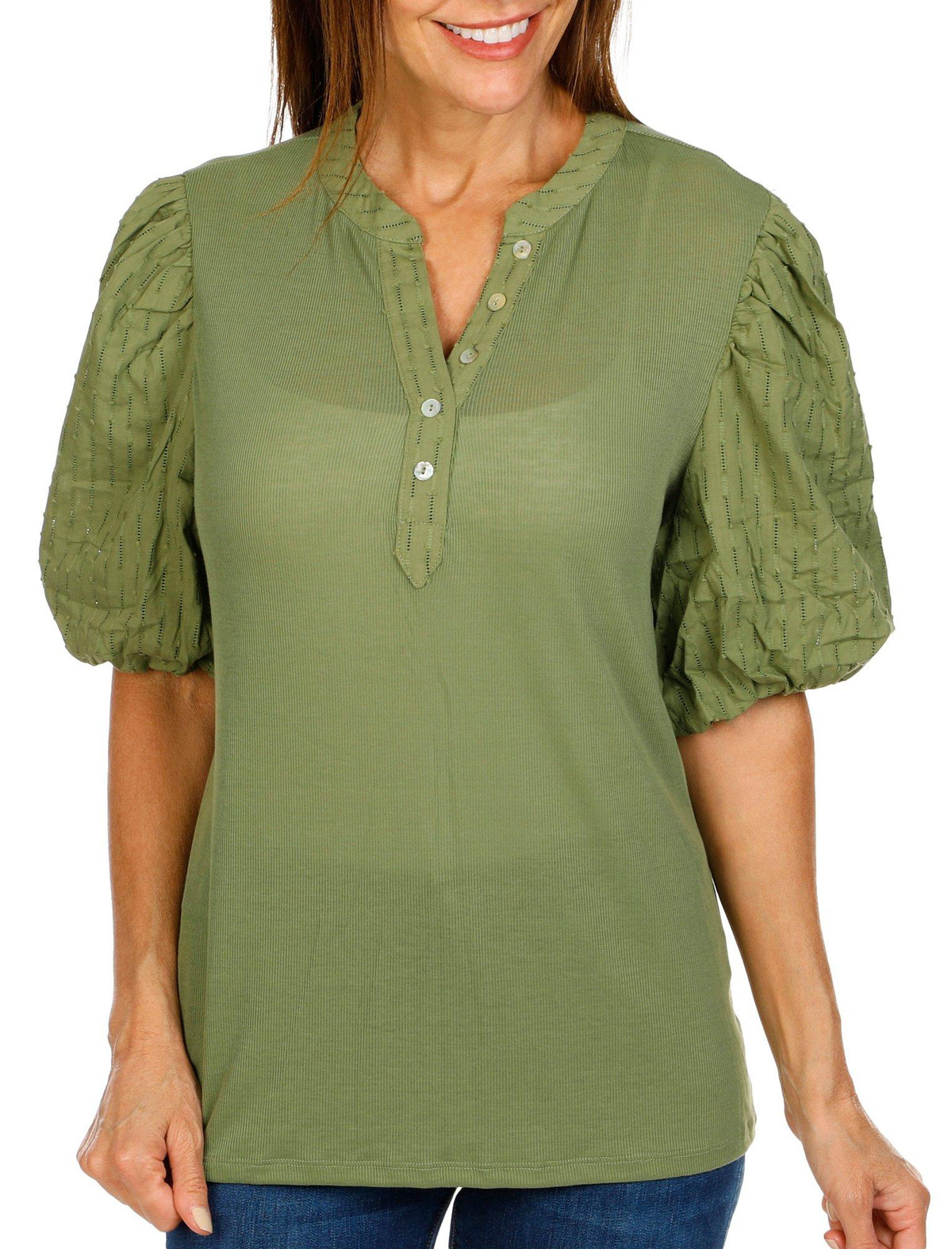 Women's Solid Puff Sleeve Top