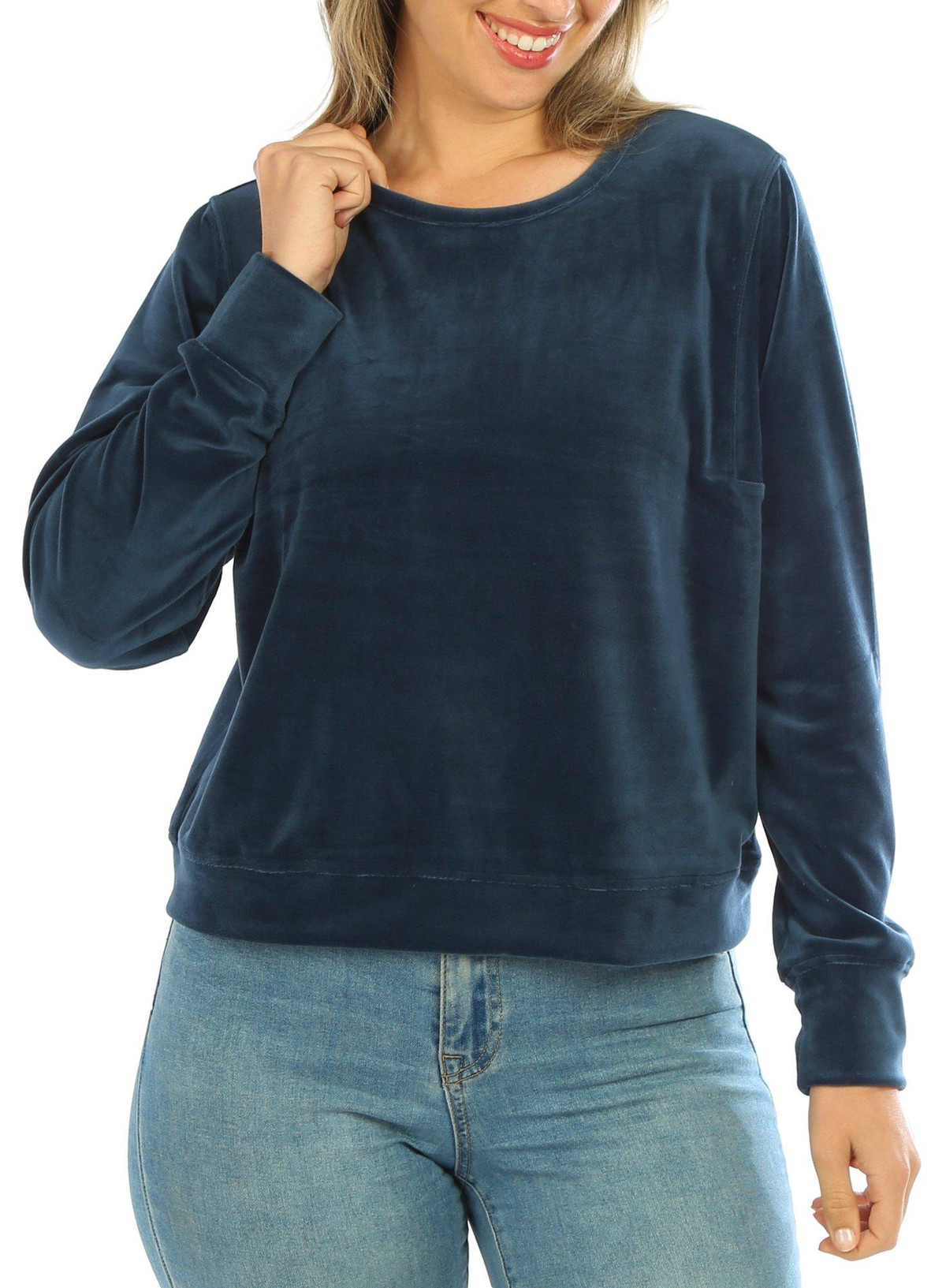 Women's Solid Velour Pullover Sweater