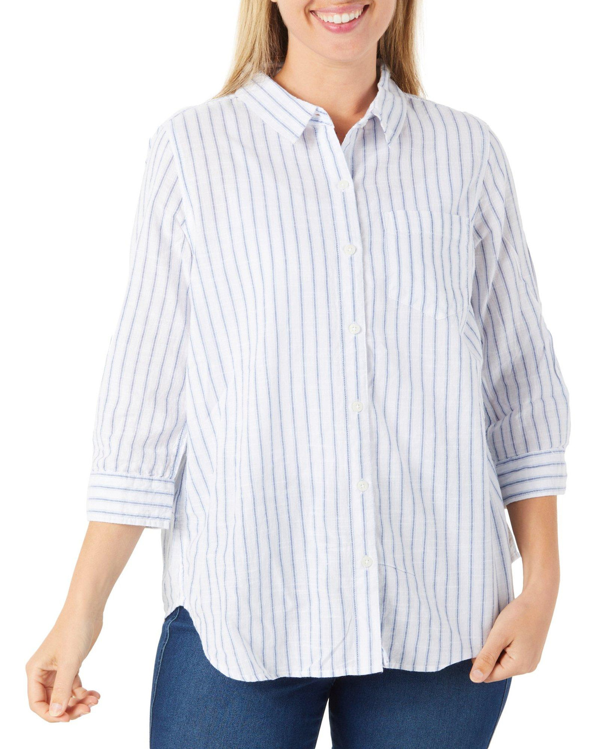 Women's Stripe Print Button Down Top